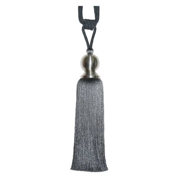 Inspired by an art deco design, this charcoal tieback has been crafted into an elegant shape and is complete with a chrome, metal mould for a sleek and stylish finish.