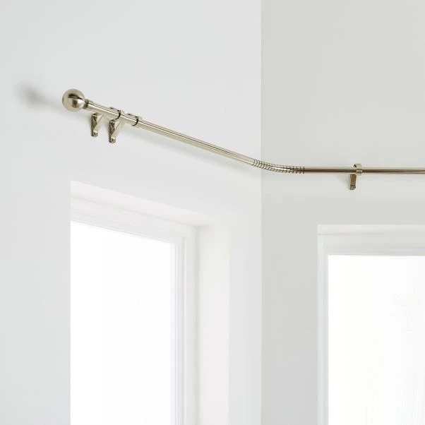 Arriving pre-cut and able to be bent by hand, the Bay Fixed Metal Eyelet Curtain Pole is perfect for accentuating your bay windows. It features a globe-shaped finial, can be cut to size, and is supplied with all fittings and fixtures.
