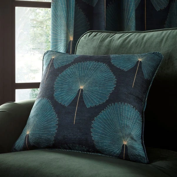This pair of curtains features an elegant, geometric fan design which will perfectly enhance your home interior. The polyester lining will help preserve the design and front fabric from fading, making these curtains long-lasting. Complete with a smart eyelet header, these curtains are designed for use with a curtain pole. Coordinate the curtains with the matching cushion for a stylish room look.
