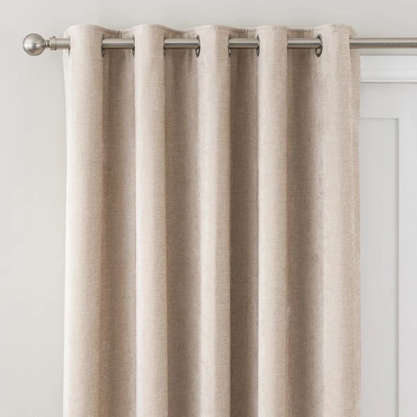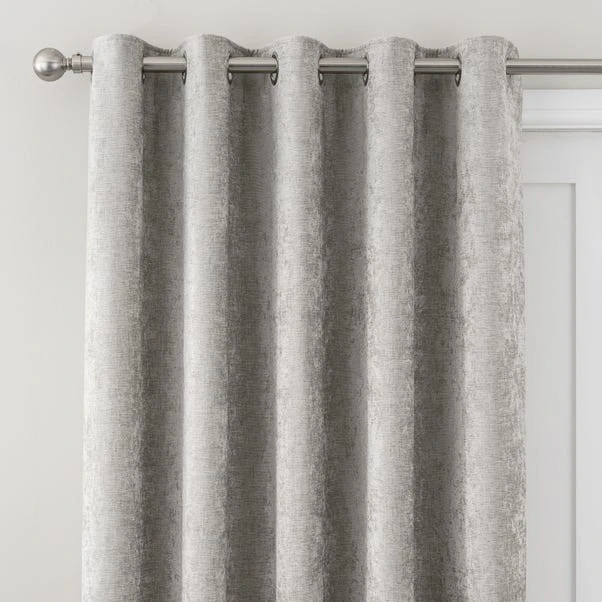 Crafted from super soft chenille yarn, this Olive eyelet door curtain is ideal for adding a touch of luxury to your home and features subtle sheen finish. The modern eyelet header allows for easy installation and creates loose, elegant folds. This curtain panel features a thermal coating to improve insulation and is available in a choice of sizes to suit your requirements.