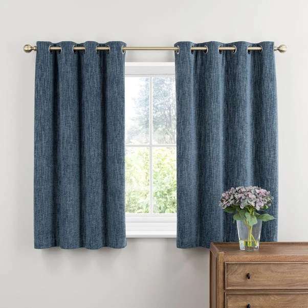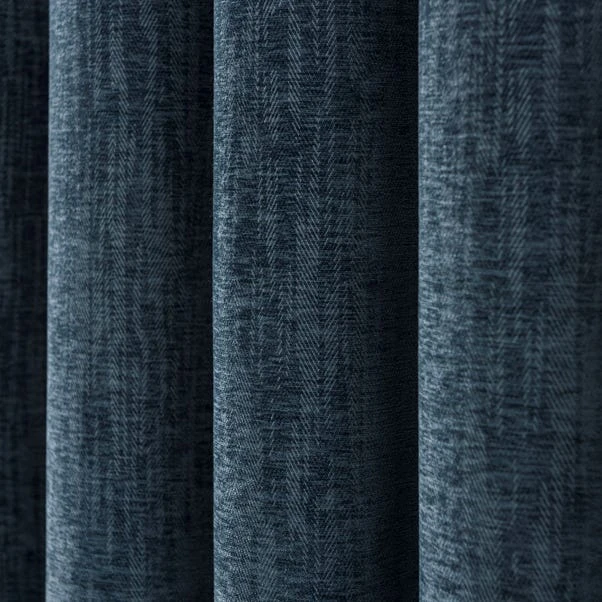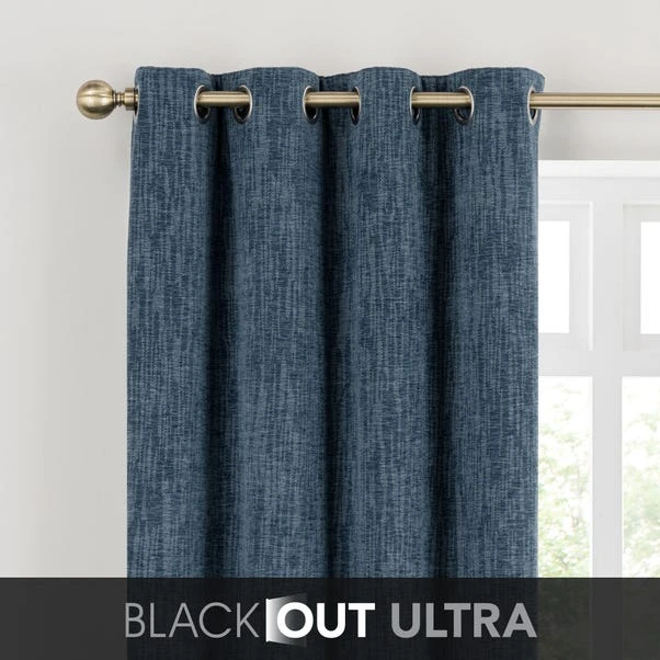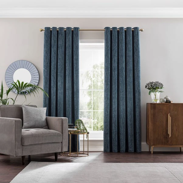 Add a stylish touch to your room with these curtains that have been crafted from a luxuriously soft chenille fabric in a natural tone. This pair of ultra blackout curtains has been designed with a laminated blackout lining and a discreet blackout-lined panel which folds down behind your curtain pole to prevent light coming through the eyelets. Perfectly suited to both contemporary and traditional styles, these chenille curtains crafted from recycled polyester, improve insulation by blocking out heat in summer and maintaining warmth in winter whilst ensuring maximum light block and privacy. Finished with a modern brushed steel eyelet header for easy installation and smooth movement across your curtain pole, Chenille Blackout Ultra curtains are available in a selection of sizes to suit your requirements. Pair with coordinating cushions to complete the look.