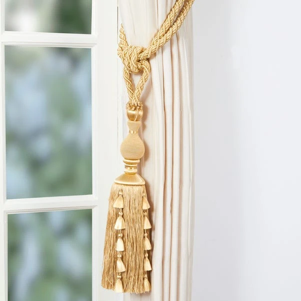 Featuring a textured tassel with turned thread details, our large curtain tieback will add texture to your window dressings. With a large embrace size, this curtain tieback will keep your curtains drawn and create that stylish silhouette at your windows, maximising the natural light in your room.