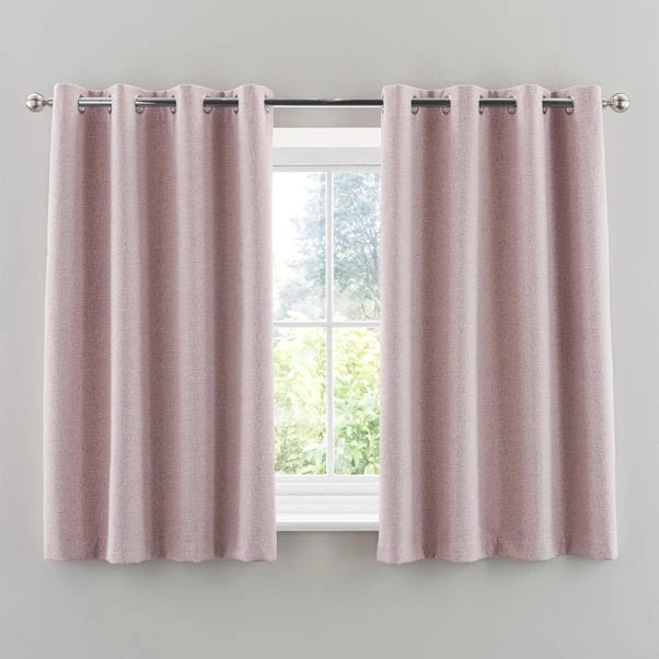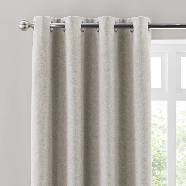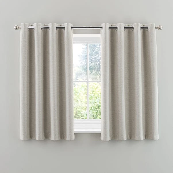 Enjoy a serene look to your room with the Crayton Blackout Eyelet Curtains. Woven with dyed, fancy yarns creating a stylish linear texture, this contemporary pair of curtains are made from durable polyester. Equipped with a blackout finish to stop unwanted light entering your home that also keeps your home warm in winter and cool in summer, this product comes complete with an eyelet header for easy installation and smooth movement across your curtain pole.