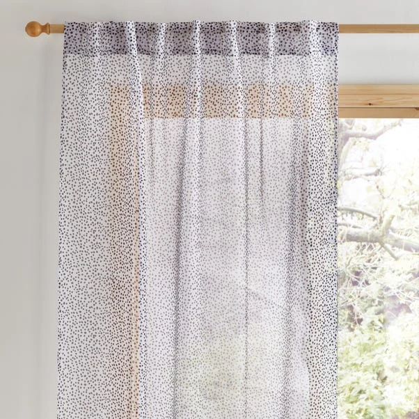 Boasting a charming modern polka dot pattern, this Dottie Voile is perfect for adding a subtle yet fun design to your windows. Perfect for allowing light through whilst helping to improve privacy, this stylish single voile panel comes complete with a hidden tab top header for a sleek appearance and easy installation.