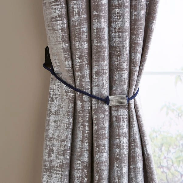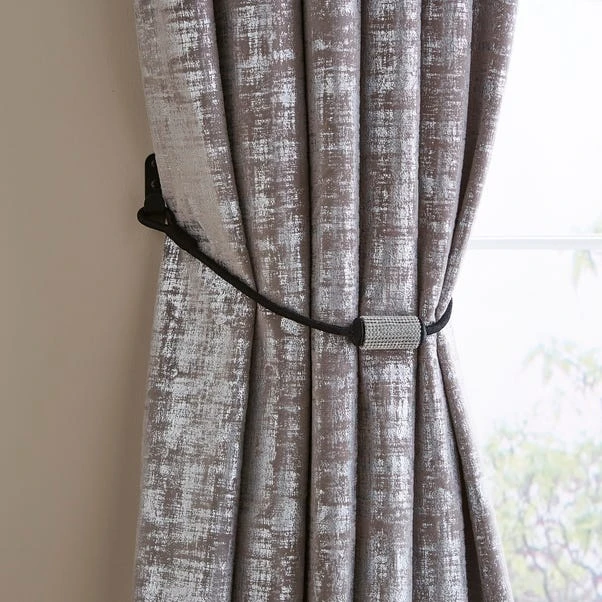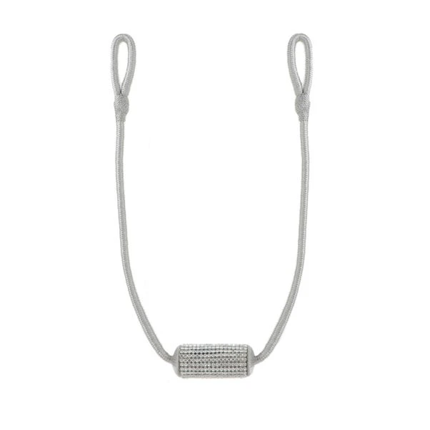 This tieback has a glamorous style with beautiful detailing. A modern barrel shape feature is accompanied by a sleek braided chord, perfect for tying back your curtain panel.