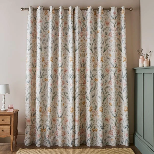 Infuse your bedroom with timeless design using the Imi Tulip Floral Cotton Blackout Eyelet Curtains. Inspired by Arts and Crafts design, these curtains feature a soft palette of hand-painted tulips that evoke classic chic. With blackout lining to keep light disturbances at bay, they blend beauty with practicality. Offered in three sizes and with matching bedding available, they are the perfect addition to a stylish bedroom.