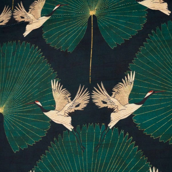 Adorned with graceful gold cranes soaring over a luxurious emerald green canvas, these blinds elevate your décor with a touch of sophistication. Crafted from recycled polyester velvet, they not only exude luxury but also reflect our commitment to recycling. Fully lined for enhanced durability and light control, these blinds come in a range of sizes to suit your windows perfectly. Complete with all fixings for hassle-free installation. To enhance the blackout capabilities please fit on the outside of the window recess.