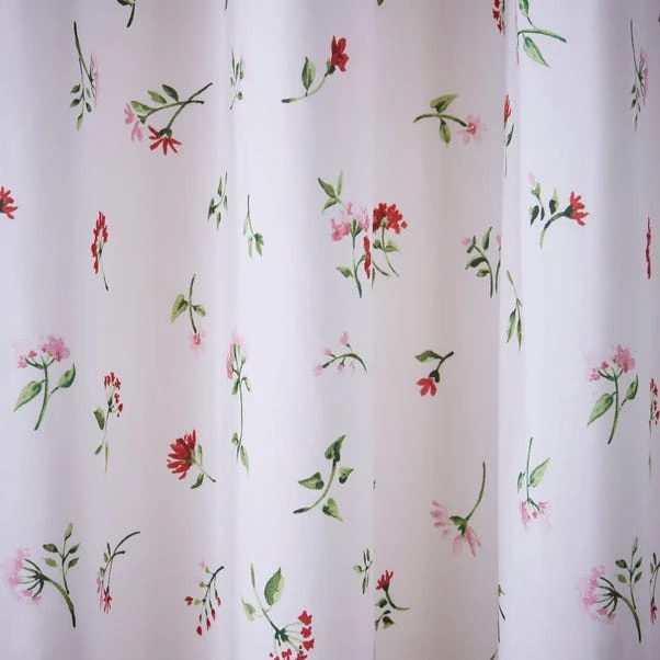 Brighten your bedroom with the playful beauty of the Margo Floral Cotton Blackout Eyelet Curtains. Featuring a charming hand-painted floral ditsy in vibrant reds and fresh greens, these curtains are perfect for a cheerful yet modern look. Their improved blackout lining provides privacy and restful nights. Available in three sizes, matching bedding is available to create a coordinated space.