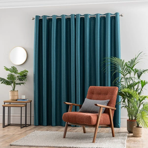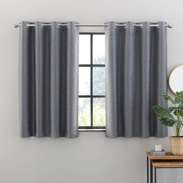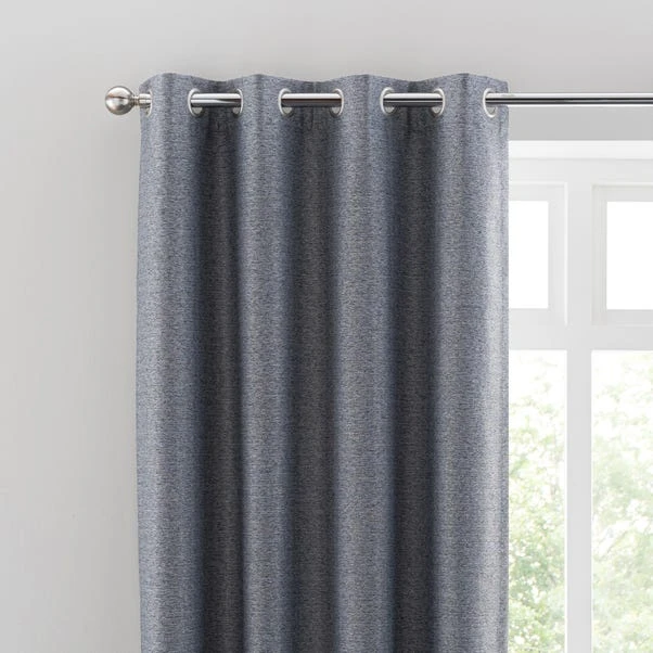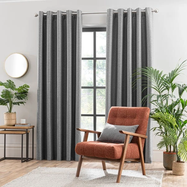Our modern Metropolitan blackout curtains with its textured weave are the perfect contemporary style option. This pair of curtains comes complete with a modern eyelet header creating large, even folds and allowing for quick and easy installation as well as smooth movement across your curtain pole. Designed with a blackout laminate to stop unwanted light entering your home, these curtains help to ensure a good night’s sleep and will provide extra privacy by blocking the view into the room from outside.