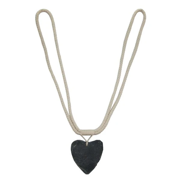 Bring a cute loving touch to your curtains with our slate heart pendant tieback, featuring a simple and contemporary design that is elegantly finished with a natural cotton embrace to hold your drapes in place.