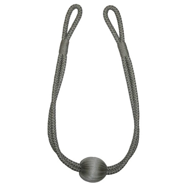 Made with a blend of durable materials this platinum silver tieback is fashioned in a woven rope design with ball detailing.