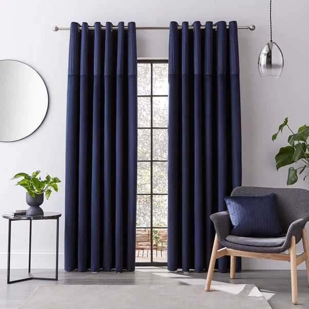 Indulge in contemporary sophistication with the Quinn curtain range, spotlighting an opulent recycled velour fabric, perfect for commanding attention in any space. Enhanced with a striped top border for an added touch of luxury. Experience elevated quality and privacy, thanks to full lining and convenient eyelet headers for effortless hanging. Available in a diverse range of sizes, these curtains empower you to effortlessly personalise your home decor to your liking.