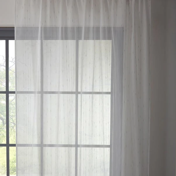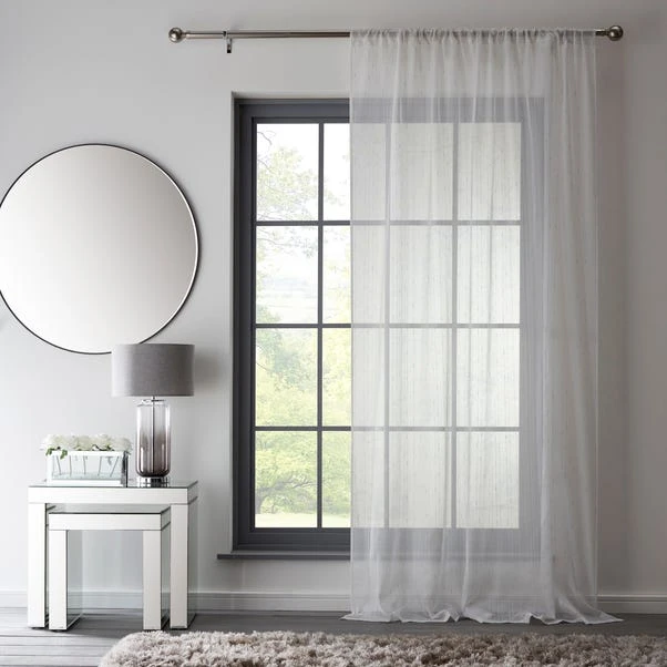 Metallic thread has been woven into a sheer panel for a glamorous look. Crafted from 100% polyester, this versatile slot top voile panel can not only be used traditionally in your windows, but also to create a separate room with room panels. This helps you improve privacy and make the most of your space. Various sizes are available, find the one best suited to your home.