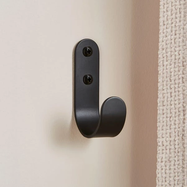 Hang your curtains back with style with our modern, L shaped curtain hooks. Supplied as a set of two, these curtain hooks come together with the fittings and are finished in a sleek matt black colourway.