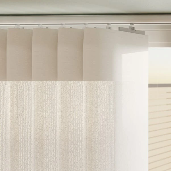 Get ready to unveil the magic of our Sheer and Shade Vertical blind. It’s not just an ordinary blind; it’s a stylish and practical masterpiece. The fabric mix of sheer and opaque panels offers a touch of elegance while providing light diffusion when open and complete privacy when closed. Thanks to the wand mechanism and vertical vanes, you can walk through the blind without needing to draw the vanes. Available in a crisp white fabric that effortlessly complements any interior style. It’s time to let the light dance on your terms.
