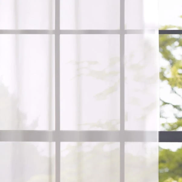 This voile features a plain textured finish which is perfect for complementing any room style. The sheer design diffuses sunlight while adding privacy to your home. An eyelet header is perfect for sliding onto a net rod for easy hanging. Fully machine washable for easy washing.