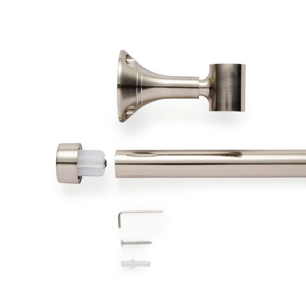 Fashioned in a stylish matt finish to suit a variety of decors, this four-metre bay pole is designed for eyelet curtains and has a 28mm diameter for added versatility. This curtain pole comes with fixtures and fittings included for easy installation and can be wiped clean for convenient care. Finished with simple stud finials for a modern touch, this pole is suitable for use with pencil pleat curtains when used with additional curtain rings.
